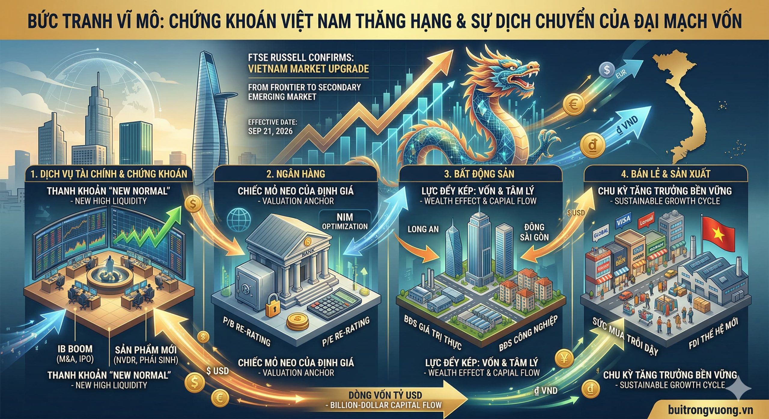 Nâng hạng thị trường chứng khoán Việt Nam là một cuộc sàng lọc lịch sử. Dòng tiền tỷ USD sẽ chỉ tìm đến những doanh nghiệp minh bạch, hiệu quả và bền vững. Đây chính là thời điểm vàng để nhà đầu tư tái cấu trúc nguồn lực và tập trung vào những trụ cột kinh tế dẫn dắt chu kỳ mới.