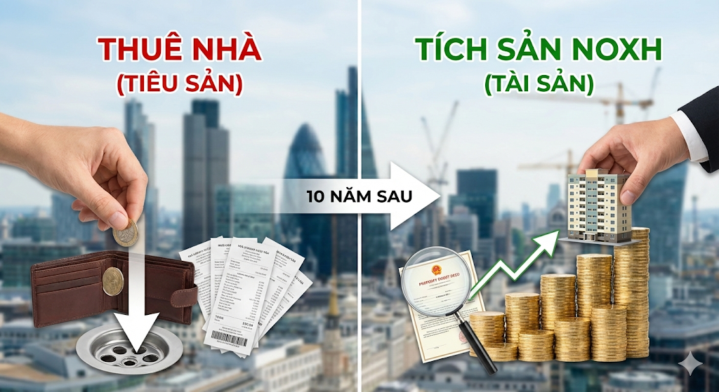 “Bất động sản tích sản không nhất thiết phải giúp bạn giàu nhanh, nhưng nó phải giúp bạn không bao giờ nghèo đi. NOXH là bệ phóng tài chính lý trí: Anh chị dùng tiền thuê nhà để trả gốc vay, và nhận lại một khối tài sản thực sau một thập kỷ.”